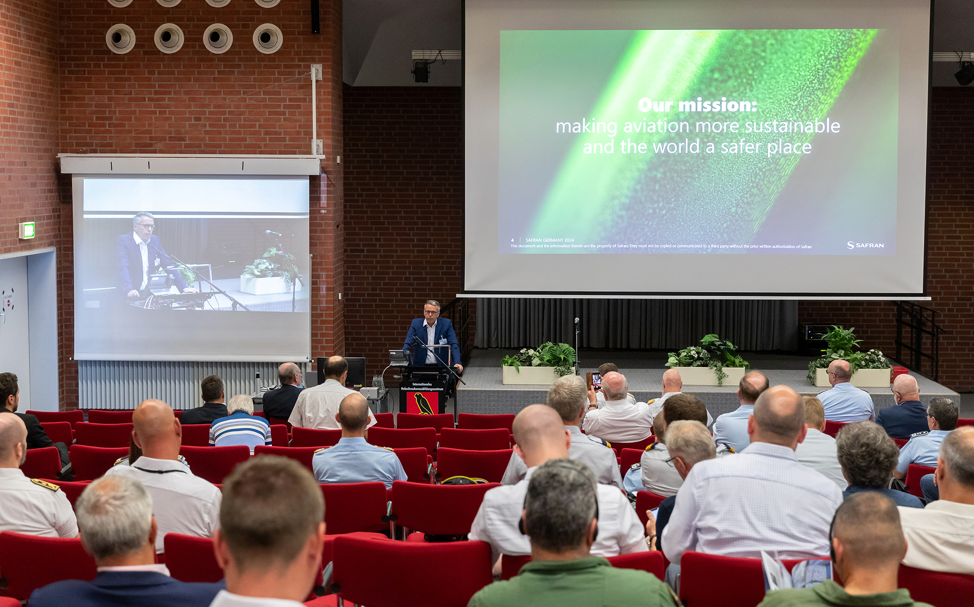„Wir müssen uns im bemannten Hubschrauberbetrieb neu formieren, und das tun wir auch in allen Bereichen“, sagte Dr. Przemeck bei seiner Rede. Er ging im Weiteren auf die Erforderlichkeit klima- und umweltfreundlichen Fliegens und der Ausrüstung aller Hubschrauber mit Hard- und Software für die Avionik, die gegen Cyberangriffe resistent ist, ein. Dr. Przemeck schloss seinen Vortrag mit: „Ich denke, sowohl im zivilen, im BOS- und im Streitkräftebereich werden die Anforderungen an moderne, systemvernetzte Hubschrauber, die allen Bedrohungen resilient gewachsen sind, noch erheblich steigen.“
