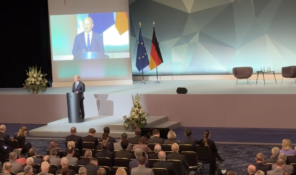 Scholz machte deutlich, dass die Bundeswehr, das Wohl und die Einsatzbereitschaft der Soldatinnen und Soldaten, für ihn eine wichtige Aufgabe des deutschen Bundeskanzlers sind. So stellte er sich auch eine gute halbe Stunde den Fragen der anwesenden militärischen Führungskräfte. Zudem suche er den persönlichen Kontakt mit Soldatinnen und Soldaten. „Ich habe die Bundeswehr in den vergangenen Monaten häufig besucht“, sagte Scholz. „Weil es mir wichtig ist nachzuvollziehen, wie die Stärkung unserer Verteidigungsfähigkeit und der Bundeswehr vorankommt. Weil ich Ihnen und Ihren Kameraden und Kameradinnen dafür politischen Rückhalt gebe. Und weil es mir wichtig ist, mit Ihnen im Gespräch zu bleiben.“