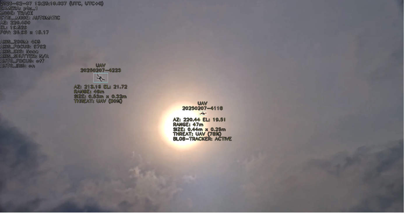 Bei letzterem Setup werden mehrere EchoShield als 360° Radar sowie eine OpenWorks Vision Flex 360 Kamera & IR H690 Kamera eingebunden. Bei sUAS-Drohnen verdoppelt sich die Klassifizierung auf 1.000 Meter und eine Shahed kann sogar auf bis zu 15.000 Meter optisch detektiert, auf 10.000 getrackt und mit der KI auf 5.000m am Tag bzw. 3.500m in der Nacht klassifiziert werden.