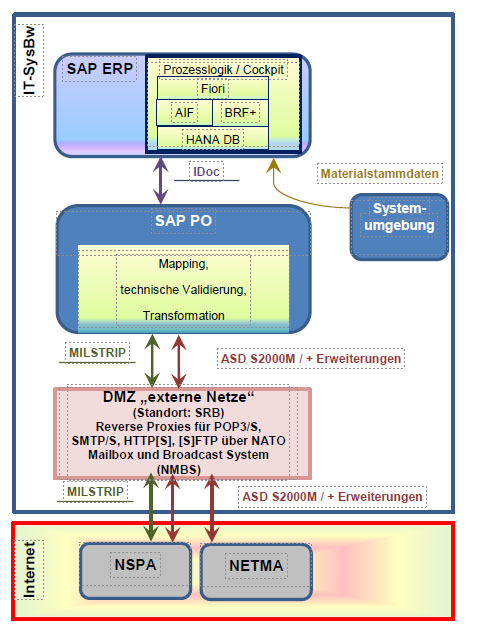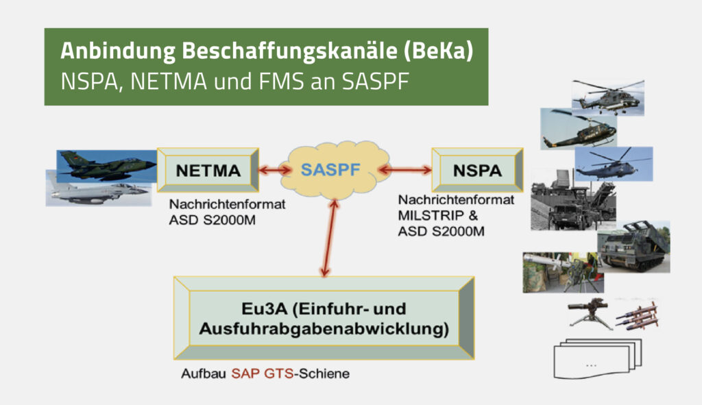Die NSPA ermöglicht die logistische Bewirtschaftung verschiedenster Waffensysteme über die Datenaustauschformate MILSTRIP und ASD S2000M .