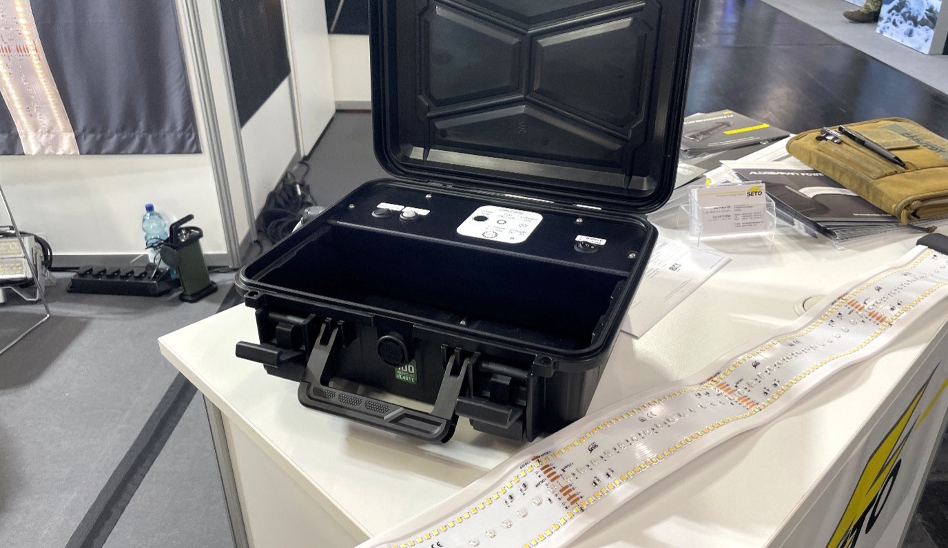 Die dritte Premiere von SETO ist das Emergency Kit. Dieses arbeitet mit allen Großflächenleuchten aus dem Hause SETOLITE. Im Grunde ist das Emergency Kit ein Akku, der in die Zuleitung eingebunden wird. Bei einem Stromausfall – egal ob Netzbetrieb, Generator etc. – versorgt das Emergency Kit die Leuchte ganz automatisch auch weiterhin mit Strom.