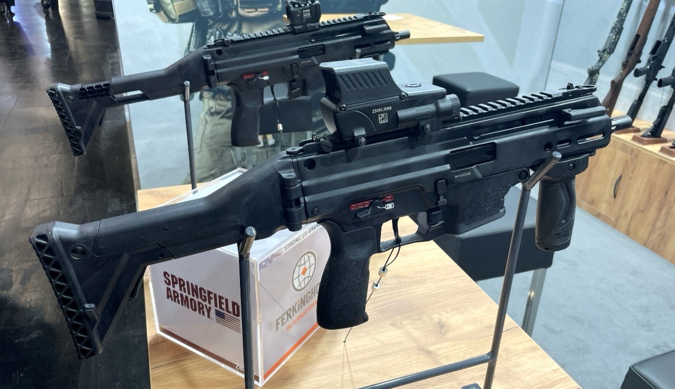 Die auf der Messe vorgestellten beiden Exemplare der KUNA sind Vollautomaten im Kaliber 9x19mm und haben eine auffallende Designsprache eines deutschen Herstellers aus Oberndorf am Neckar. Das Schönste gleich zu Anfang: Nur beim Design hören die Ähnlichkeiten nicht auf, denn in einer Welt wo Hersteller von Maschinenpistolen und Pistolenkarabinern immer mehr zum einfachen und billigen unverriegelten Masseverschluss greifen, bedient sich HS Products dem beweglich abgestützten Rollenverschlusses.