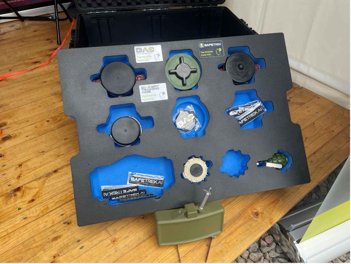 Zudem wird mit SAFETREK eine sogenannte Dual-use-App zur Detektion, Identifizierung und Analyse von Kampfmitteln angeboten. Die App nutzt dabei Künstlicher Intelligenz (KI). Ein Nutzer kann nach Entdeckung eines verdächtigen Gegenstandes mit Hilfe der Kamera eines Smartphones, Tablets, etc. praktisch den Gegenstand „aufnehmen“ und die App versorgt ihn automatisch mit allen relevanten Informationen. Dabei erkennt die App das Objekt, identifiziert es und versorgt den Nutzer mit allen technischen Details und Hinweisen zur Beseitigung. Dabei nutzt die App KI-unterstützte Bilderkennungsalgorithmen.