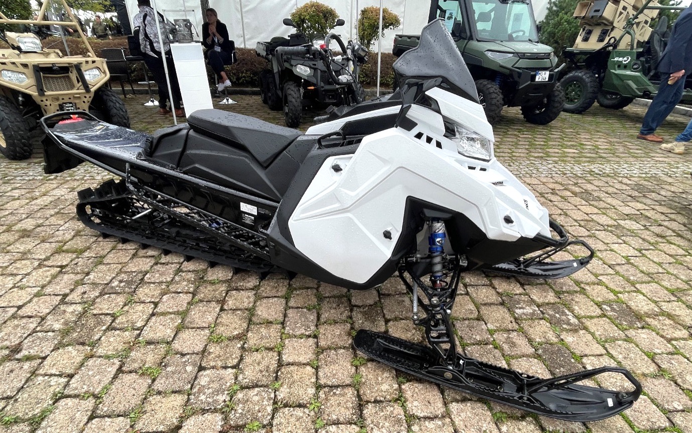 Der auf dem KSK-Symposium gezeigte neue 2025 Military 850 PRO RMK 155 ist ein wendiges, leichtes Schneemobil, das für überlegene Manövrierfähigkeit der Militär-Schneemobile bei Patrouillen- und Aufklärungsfahrten entwickelt wurde (wir berichteten). Die verlängerte Spur und der sich verjüngende Tunnel erhöhen die Leistung des Schneemobils im Tiefschnee, während ein durchgehender Kühler für bessere Kühlung und