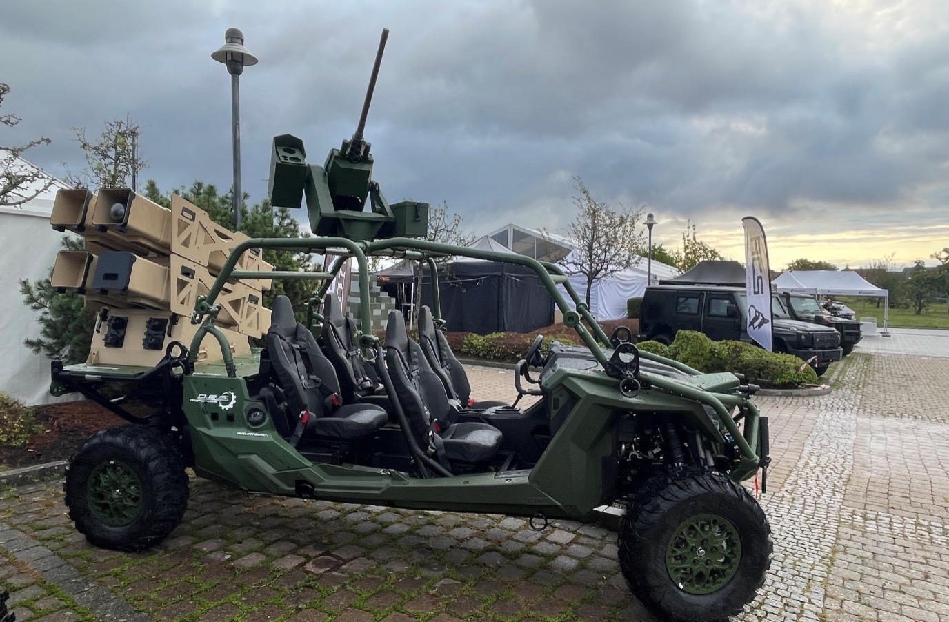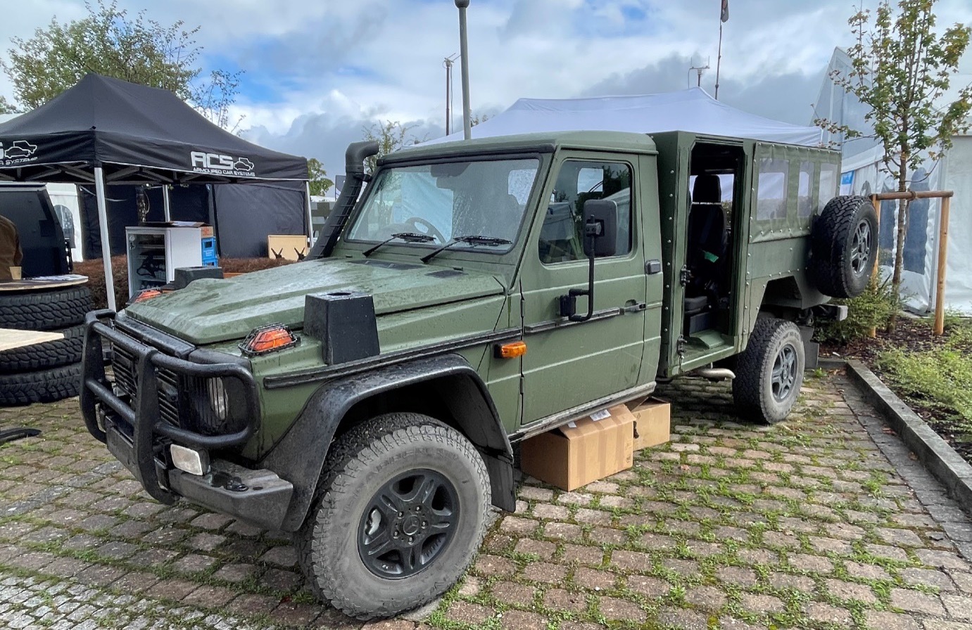 Auf dem 9. KSK-Symposium Rüstung 2024 waren natürlich sehr viele taktische Fahrzeuge zu sehen. Bei vielen handelt es sich nicht wirklich um neue Fahrzeuge oder Varianten, sondern nur mit neuen Sensoren oder Effektoren ausgestattete Modelle.