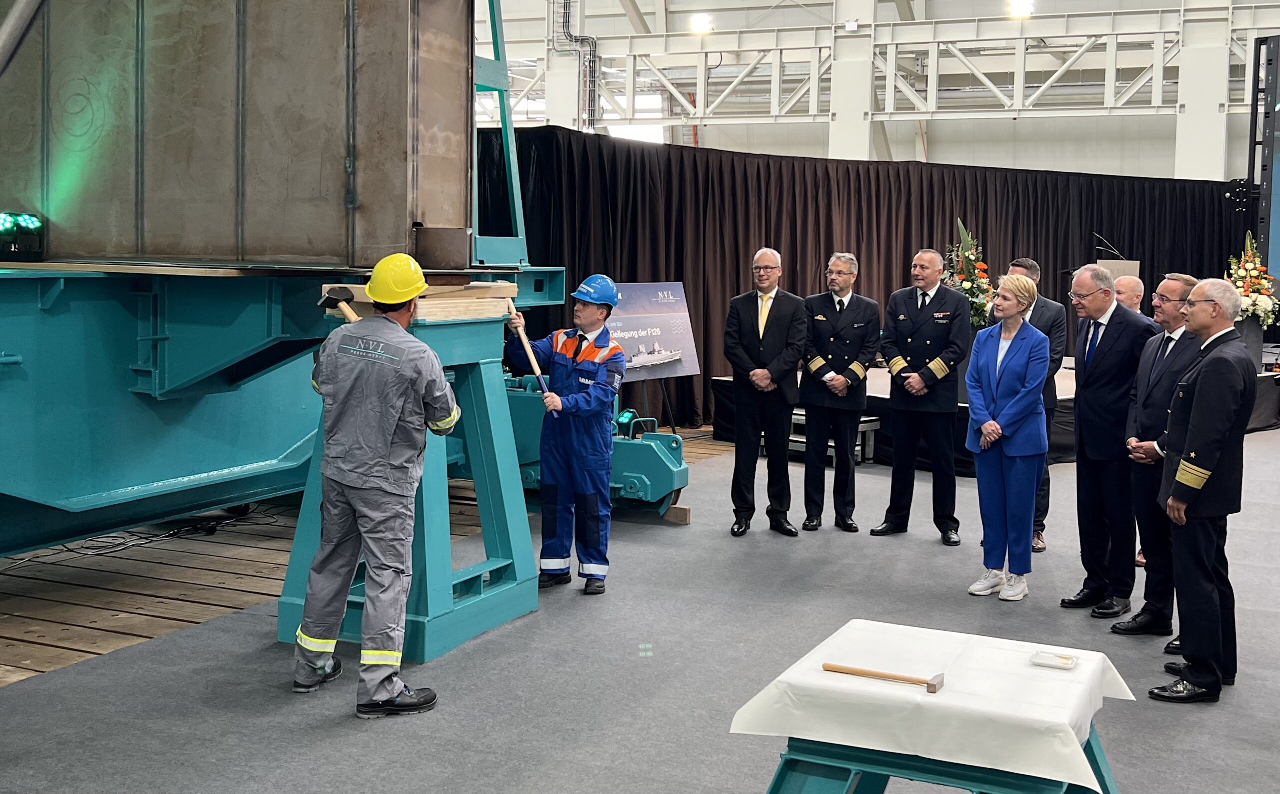 „Wir brauchen sechs, nicht nur vier von diesen Fregatten“, bekräftigte der deutsche Verteidigungsminister Boris Pistorius heute Morgen bei der Kiellegung der ersten Fregatte 126 in der Peene-Werft in Wolgast. Bei diesem zweiten Meilenstein im Schiffsbau waren auch Ministerpräsidentin Manuela Schwesig, Ministerpräsident Stephan Weil, sowie der Inspekteur der Marine, Vizeadmiral Jan Christian Kaack als Ehrengäste anwesend. Vertreter des Generalunternehmers DAMEN Naval und der Unterauftragnehmer NVL und Thales zeigten sich mit dem bisherigen Verlauf des Vorhabens F126 zufrieden und für die Fertigung zwei weiterer Fregatten bereit.