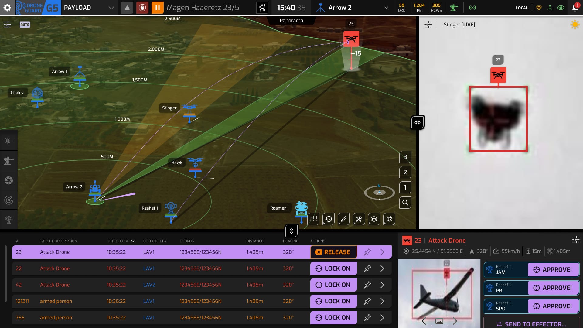 Bis heute hat IAI Hunderte von UAV-Erkennungs- und Abfangsystemen an Kunden weltweit geliefert, mit einem kumulierten Umsatz von mehreren hundert Millionen Dollar und Systemen, die in den Vereinigten Staaten, Europa und Asien im Einsatz sind und einen wichtigen Schutz für Bodenanlagen, mobile Plattformen und strategische Infrastruktur bieten.