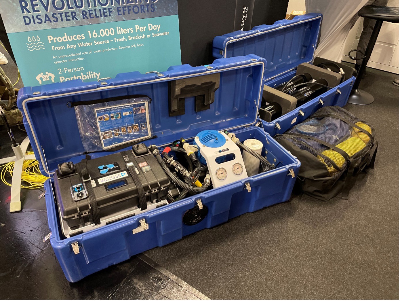 Die Katadyn Group hat während der Enforce Tac 2024 in Nürnberg die Deutschlandpremiere der Entsalzungsanlage Aquifer 4000 gefeiert. Bei dem System handelt es sich um ein großvolumiges Entsalzungssystem zur Herstellung von 16 m³ (16.275 Liter) Trinkwasser pro Tag, oder 678 Liter/Stunde. Damit können problemlos Spezialkräfte oder Infanteristen in Gruppen- und Zugstärke versorgt werden.