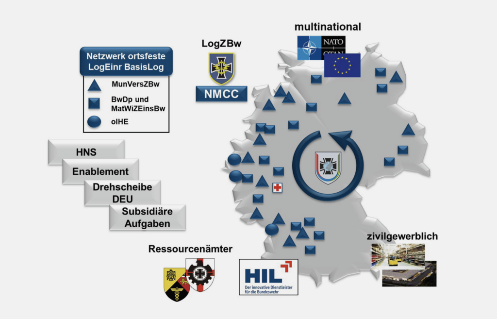 Die hierzu vollzogene Umgliederung des Logistikzentrums der Bundeswehr, die stufenweise Wiederinbetriebnahme von Material- und Munitionslagern, die bedarfsgerechte Integration zivil-gewerblicher Leistungen sowie die eingeleitete Aufstellung eines aufbauorganisatorischen Kerns eines National Movement Coordination Centre (NMCC) im LogZBw sind sichtbare Zeichen und erste wesentliche Erfolge.
