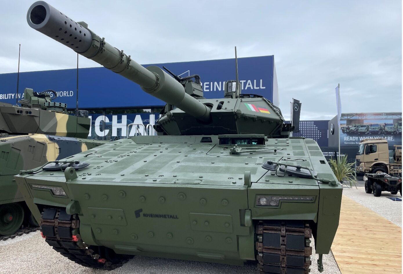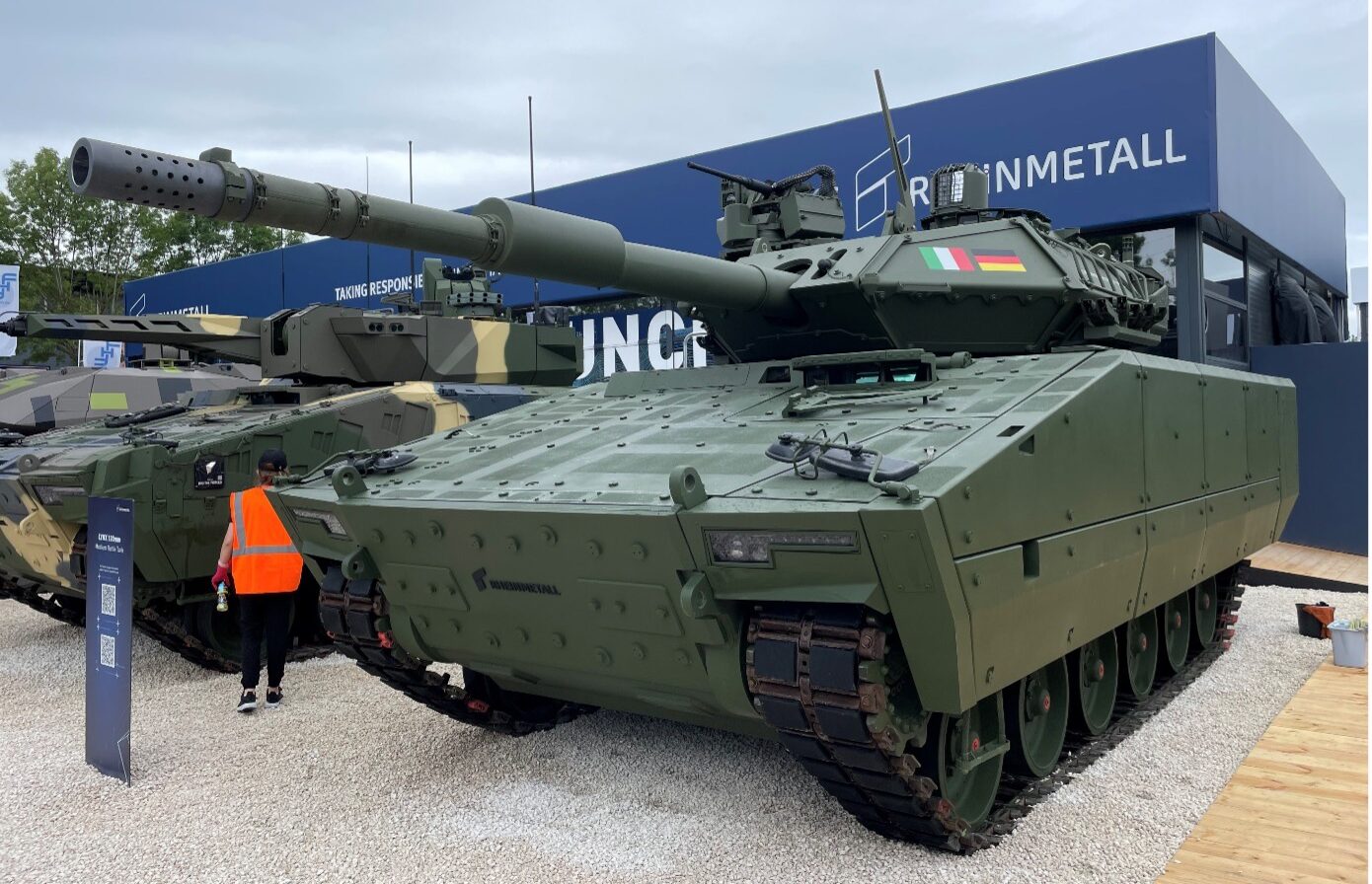 Besonders hervorzuheben ist allerdings das modulare Konzept, das auf einem gemeinsamen Fahrmodul und flexibler Missionsausstattung basiert. Dies ermöglicht die Umrüstung des Basisfahrzeuges in verschiedene Konfigurationen wie Schützenpanzer, Flugabwehrsystem, Führungsfahrzeuge oder auch Sanitätsfahrzeuge während der gesamten Nutzungsphase. Oder wie in Paris gezeigt eben als Feuerunterstützungsfahrzeug bzw. leichtem Kampfpanzer mit einer 120 mm Bewaffnung.