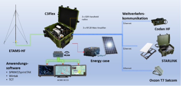 Als Beispiel können die bereits in der Nutzung befindlichen PRC-Funkgeräte der Bundeswehr genauso angebunden werden wie das Satellitennetzwerk Starlink des US-Raumfahrtunternehmen SpaceX. Über generische Amplifier mit 20 W können auch Handfunkgeräte angebunden werden.