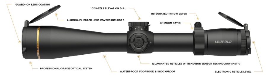 Der Mechanismus zur Höhen- und Seitenverstellung wurde vom Wettkampfzielfernrohr Mark 5HD übernommen, was zu einem größeren Verstellbereich, besserer Taktilität und hervorragender Präzision führt. Zudem ist der abnehmbare Zoom-Schnellverstellhebel, ebenfalls aus dem Mark 5, extrem robust und lässt mehr Platz für den Kammergriff. Neben den bekannten Modellen 1-6×24, 2-12×42, 3-18×44, 3-18×40 und 4-24×52 gibt es nun auch ein neues 3-18×56, das besonders für Europa interessant sein dürfte. Zudem stehen vier Absehen zur Auswahl: Illuminated FireDot Duplex, Illuminated TMOA, Illuminated FireDot Boone & Crockett sowie Illuminated FireDot Twilight Hunter.