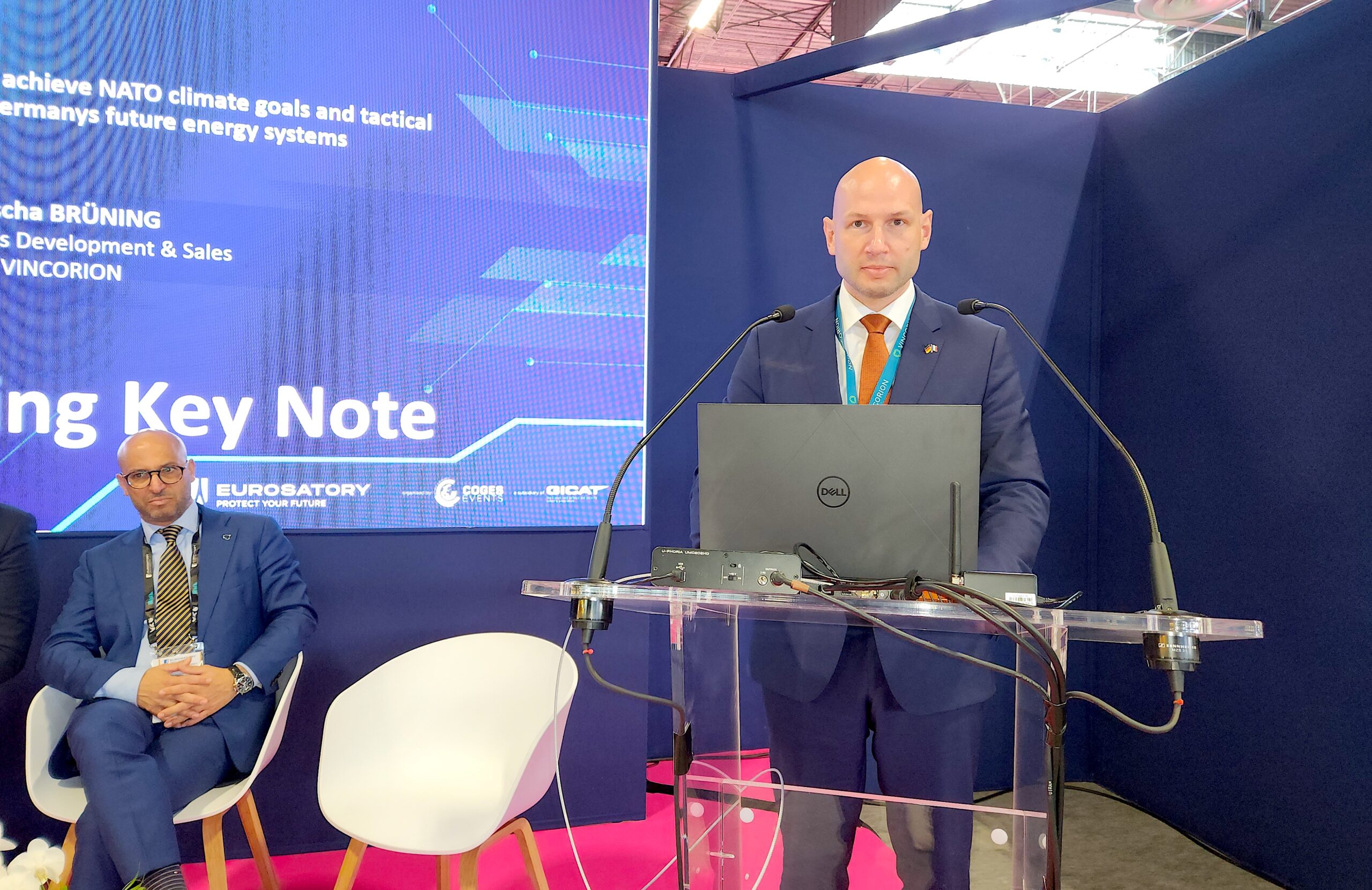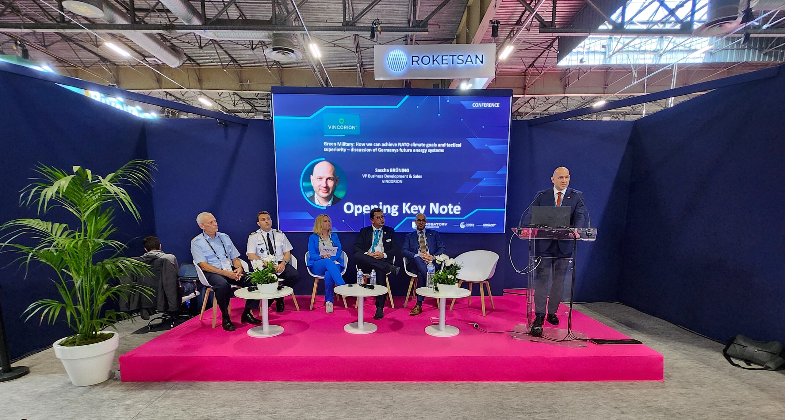 Dass Nachhaltigkeit und taktische Überlegenheit kein Widerspruch sein müssen, erläuterte Daniel Zeitler, Head of Product Management bei Vincorion, auf dem Podium. „Moderne Energiesysteme sind flexibler, skalierbar und können mit Solarstrom betrieben werden. Dadurch reduzieren wir nicht nur den Kraftstoffverbrauch um bis zu 40 Prozent, sondern verschaffen den Armeen auch einen entscheidenden Vorteil im Einsatz.“