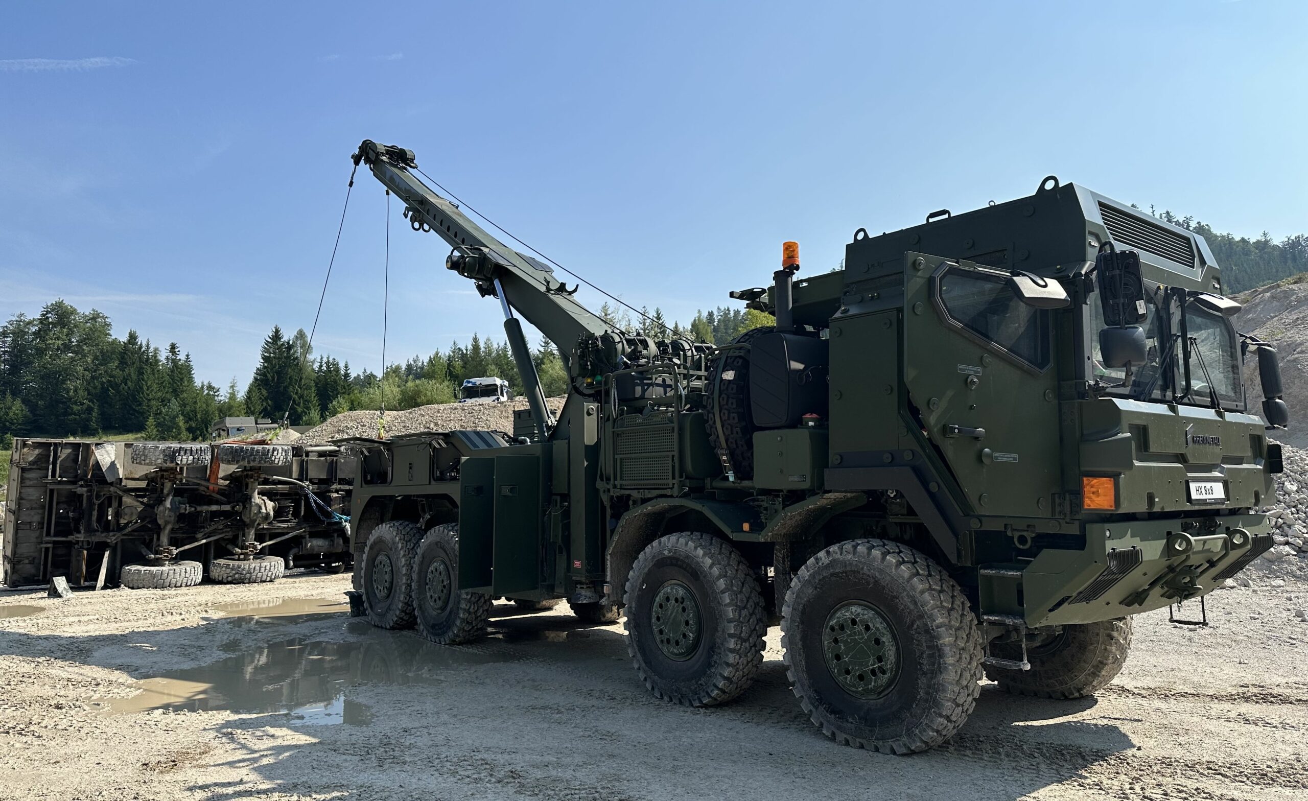 Die Lösung von Rheinmetall wurde bereits am 12. Juli 2024 einem ausgewählten Publikum in der dynamischen Vorführung vorgeführt. Bei den Recovery Days präsentierte Rheinmetall ein Bergefahrzeug auf HX-Basis. Der 540 PS Motor sorgte beim damals gezeigten HX Recovery für die notwendige Power, ebenso wie die Rotzler-Winden in Verbindung mit dem Miller-Kran. Das Bergefahrzeug war mit dieser Ausstattung sogar in der Lage, bei den Erprobungen durch Kanada einen 18 Tonnen Container zu heben.