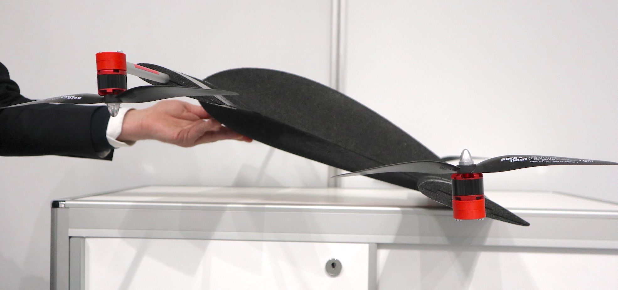 Stolz präsentierte Ingenieur und Erfinder Dietrich von Witzleben seine Drohne in der Start-up-Area der diesjährigen Enforce Tac. Der TC Falke seines Unternehmens Luftkraft-Technologies setzt auf Innovationen bei Material und Design, um leichter, schneller und kostengünstiger zu sein als vergleichbare Quadrocopter. Ende Januar absolvierte sie ihren Jungfernflug.