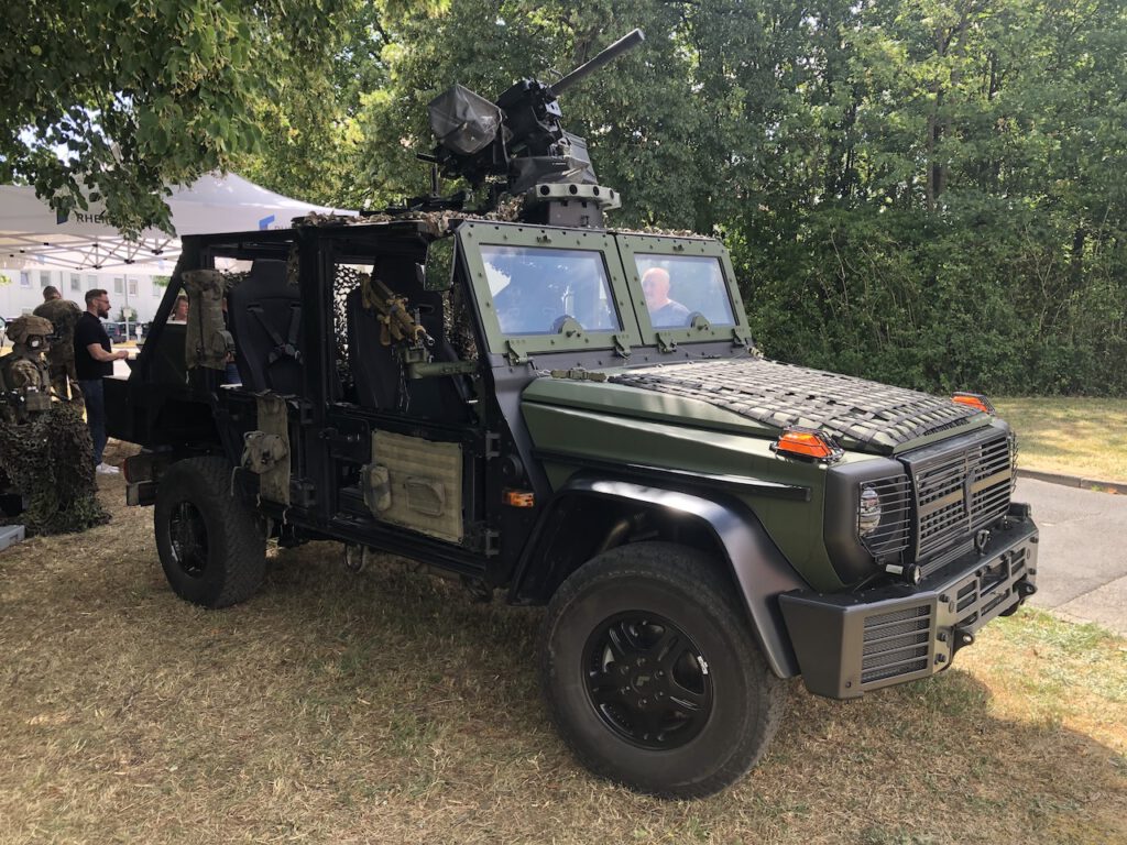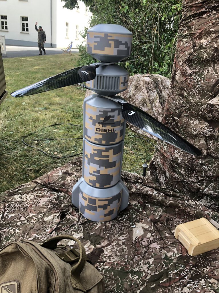 DIEHL Defence zeigte die Loitering Munition LIBELLE. Hier ist für die Zukunft auch eine High-Power-Electro-Magnetics (HPEM) Variante angedacht. Sie könnte als Drohne militärische Fahrzeuge (Land, Luft, See), Kommandostände, etc. attackieren. Ebenfalls bei DIEHL war der Polaris MRZR-D4 von Diederich Engineering Systems (D.E.S.) mit einer Fernbedienbaren Waffenstation EOS R150 (70 kg Dachlast) und einem MG6 (Dillon Aero M134D) zu sehen. Die Waffenstation kann aber alle schweren Handwaffen der Bundeswehr aufnehmen und verfügt über das 3D EchoGuard-Radar von Echodyne. Damit kann die Waffe als Counter-UAV System genauso wie gegen Erdziele eingesetzt werden. Am Heck trägt das Fahrzeug ein Mehrfachstartgerät für sechs LIBELLEN. Diese werden bedient über ein Tablet vom Kommandantenplatz aus. Die LIBELLE biete 30 Minuten Flugzeit mit bis zu 100 km/h Fluggeschwindigkeit.