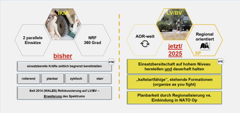 Nach Ende des Kalten Krieges und der damit verbundenen Ausrichtung der Streitkräfte auf Internationales Krisenmanagement (IKM) war die völkerrechtswidrige Annexion der Krim durch die Russische Föderation im Jahr 2014 ein wesentlicher Indikator der sich veränderten globalen sicherheitspolitischen Lage. Der NATO-Gipfel in Wales 2014 sowie daran anschließend die Anpassung der konzeptionellen Rahmenlandschaft waren der Ausgangspunkt für strukturelle Anpassungen der Streitkräfte an die veränderte sicherheitspolitische Lage. Dies begann mit der Erstellung Weißbuch der Bundeswehr (2016), erstreckte sich über die Konzeption der Bundeswehr bis hin zum Fähigkeitsprofil der Bundeswehr.